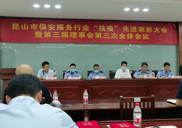On the morning of August 10, the Kunshan Security Service Industry Association held the Kunshan Security Service Industry "Anti-epidemic" Advanced Commendation Conference and the 3rd Plenary Meeting of the 3rd Council. Municipal Public Security Bureau Public Security Brigade Instructor Shen Feng, Deputy Chief Xu Hui, Security Management Squadron Lin Renqing, Zhang Jun, Security Association President Jin Yonglin and governing units attended the meeting. Jiusheng Security was also honored to be invited, and Mr. Zhang Hailong, the deputy general manager of our company, attended the meeting on behalf of.