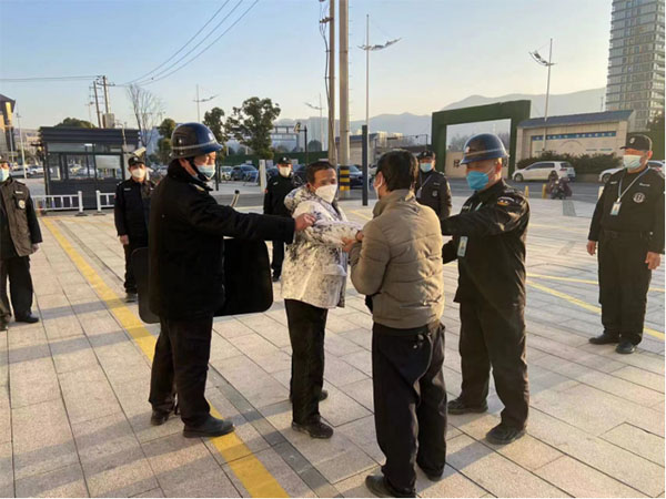 In order to ensure that the security guards can handle the emergency as soon as possible and properly, reduce the safety risk, reduce the impact and expand the scope, effectively ensure the safety of the lives and property of the business families, improve the ability of the security guards to deal with such emergencies, and maintain the order and safety of the project area. According to the annual training plan, our company's Aerial Lake Plaza project will organize and carry out the practical simulation drill and emergency plan of "Emergency Response to Fighting" at 7:00 a.m. on January 31, 2023 at the fire climbing site in front of Unit 1 of Building 9.