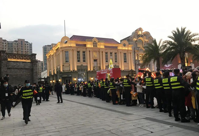 12月19日蘇州保安公司玖晟承接“華誼兄弟影視城·李現大型活動”安保服務,為做好各項現場安保秩序保障,與客戶共同協商服務方案并派專員提前現場勘測,共派出100余名安保人員和相關管理人員,以確保安保工作的順利進行。