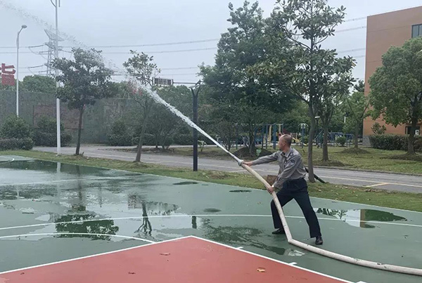 為期5天的培訓結束后的第一個周末,我司針對本次培訓積極組織了一次系統化的培訓學習,并展開了安保實務訓練,示范了防暴鋼叉、手提式消防器材、消防水袋等器械操作方法和擒敵拳、交通指揮手勢操專項培訓,現場考核并糾正保安員的動作,將在培訓中“所充之電”一點一滴傳輸到我司的每一位保安員身上。