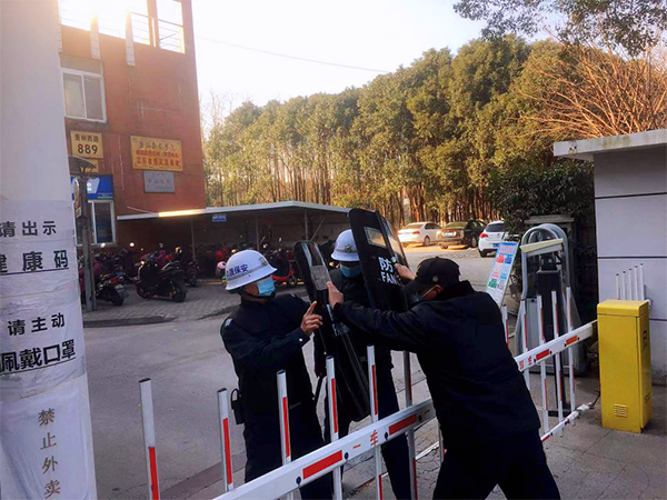 物業經理接到報告后,立即宣布啟動(防暴反恐應急預案)開啟警報,保安隊員聽到警報后,迅速攜帶防爆器材趕到校門口,按應急預案要求進入各自戒備狀態,此時該男子情緒更加激動,突然掏出匕首想沖向校園大門,執勤保安迅速對嫌疑人進行合圍,利用警用鋼叉、防爆盾牌、警棍、辣椒水等反恐防爆器材將嫌疑人控制并擒獲,及時移交給趕到的警方依法處理。