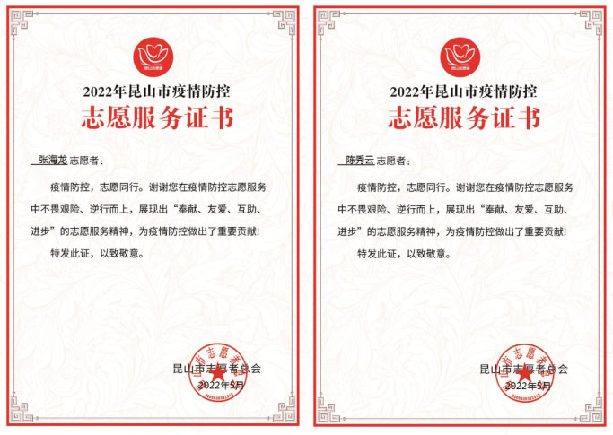 在二月份的疫情防控中,昆山保安公司玖晟保安志愿者團隊主動加入到志愿昆山組織的的核酸篩查志愿行動中,積極配合相關部門工作,開展各項義務勞動。與社區工作人員共同構筑了聯防聯控、群防群控的堅實防線,展現了新時代志愿者昂揚向上的精神風貌。對此,昆山市張浦鎮錦和社區為昆山玖晟保安公司志愿者團隊頒發了榮譽證書及感謝信。