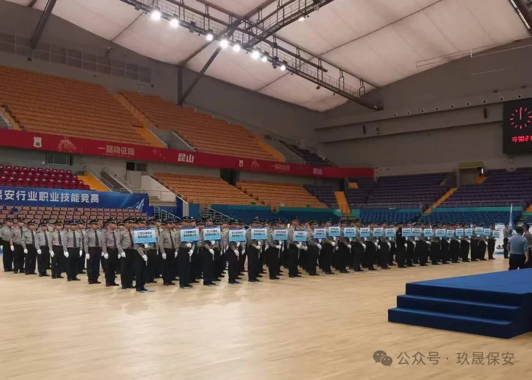 2024 年昆山市保安行業職業技能競賽在一片熱烈的氛圍中盛大開幕。昆山保安公司江蘇玖晟保安的參賽隊伍英姿颯爽,邁著整齊有力的步伐步入會場。他們身著嶄新的制服,眼神中透露出堅定與自信,準備在賽場上一展身手。