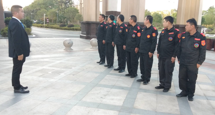 昆山玖晟保安公司通過組織保安隊員開展例會、早訓的形式活動,著重做好保安隊員的思想工作和精神文明建設,幫助保安隊員進一步明確自己的自身形象在工作中的重要性。其次,公司要求保安隊員正衣冠、整儀容、規范著裝,并加強禮節禮貌、文明用語等方面的訓練,保證隊員以良好的形象投入到安保任務中去。